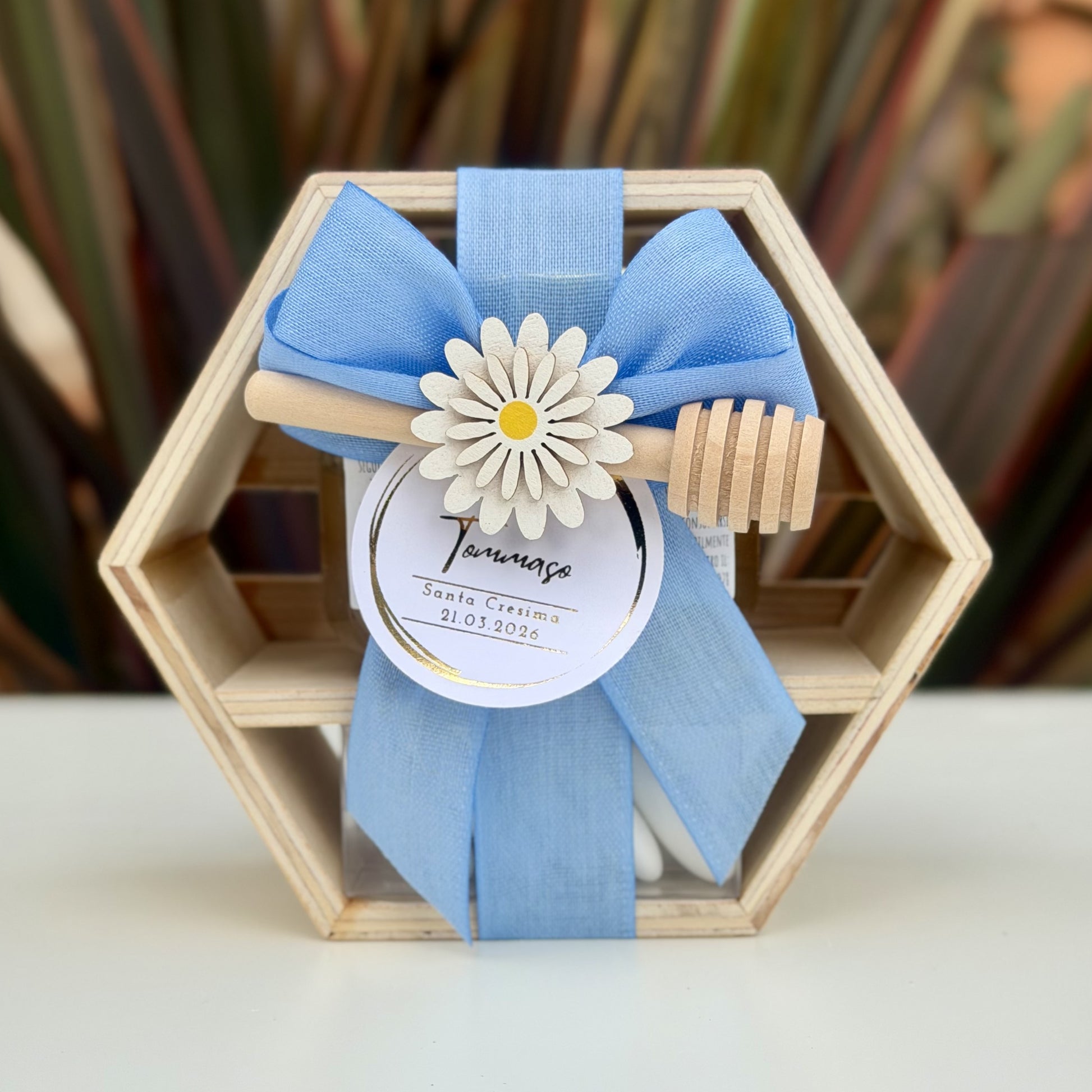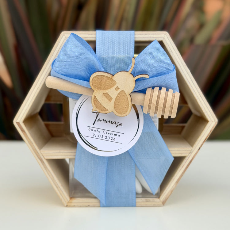 ✓ Una scatola esagonale in legno, realizzata a mano, riutilizzabile a piacere