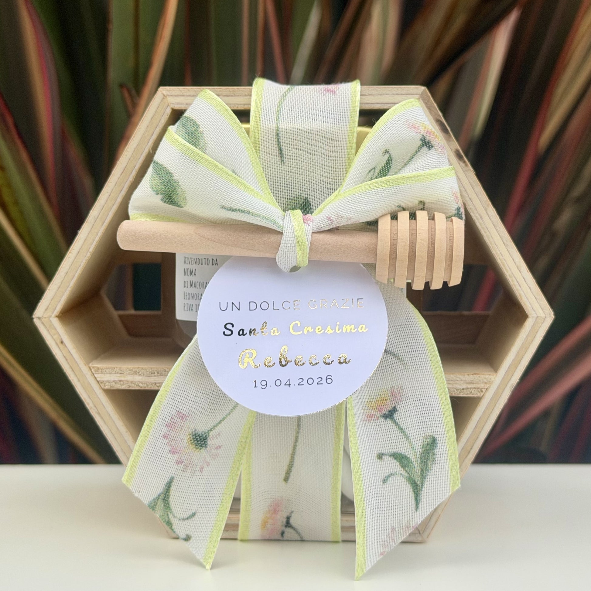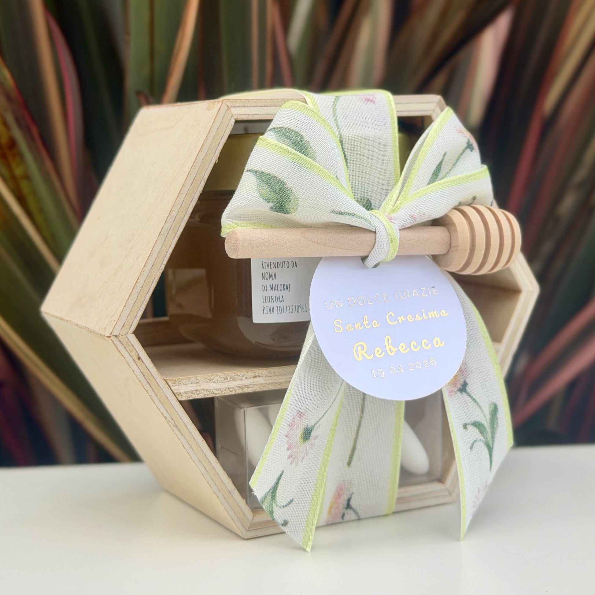 ✓ Una scatola esagonale in legno, realizzata a mano, riutilizzabile a piacere