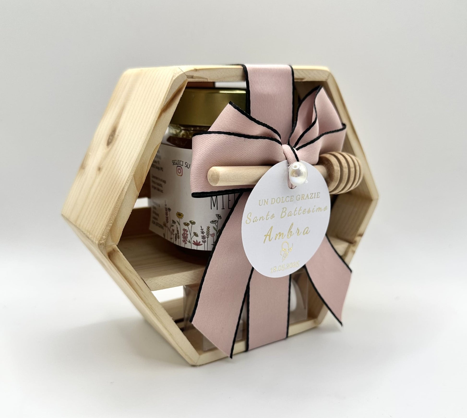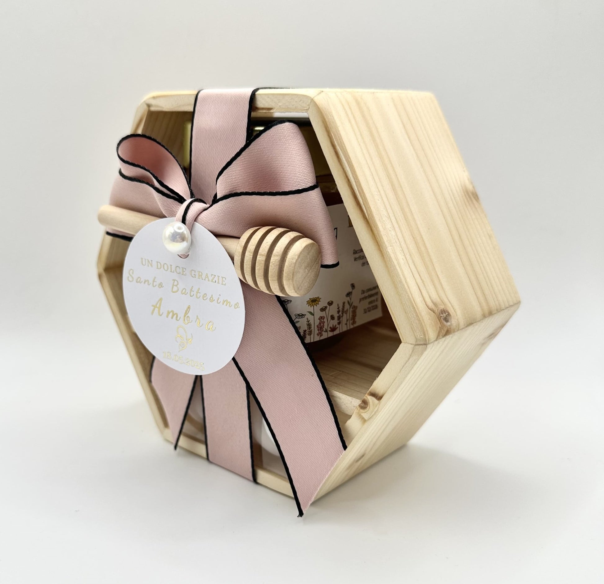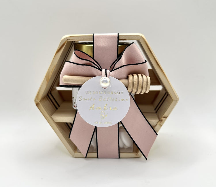 ✓ Una scatola esagonale in legno, realizzata a mano, riutilizzabile a piacere