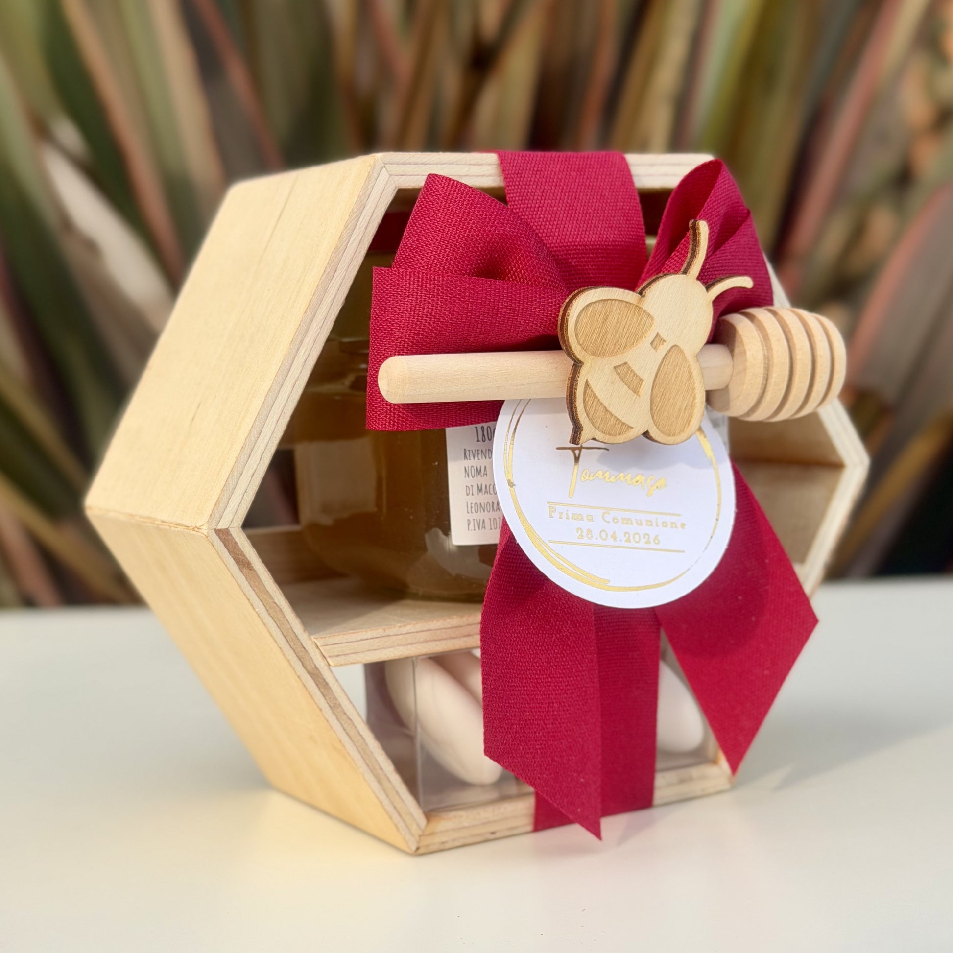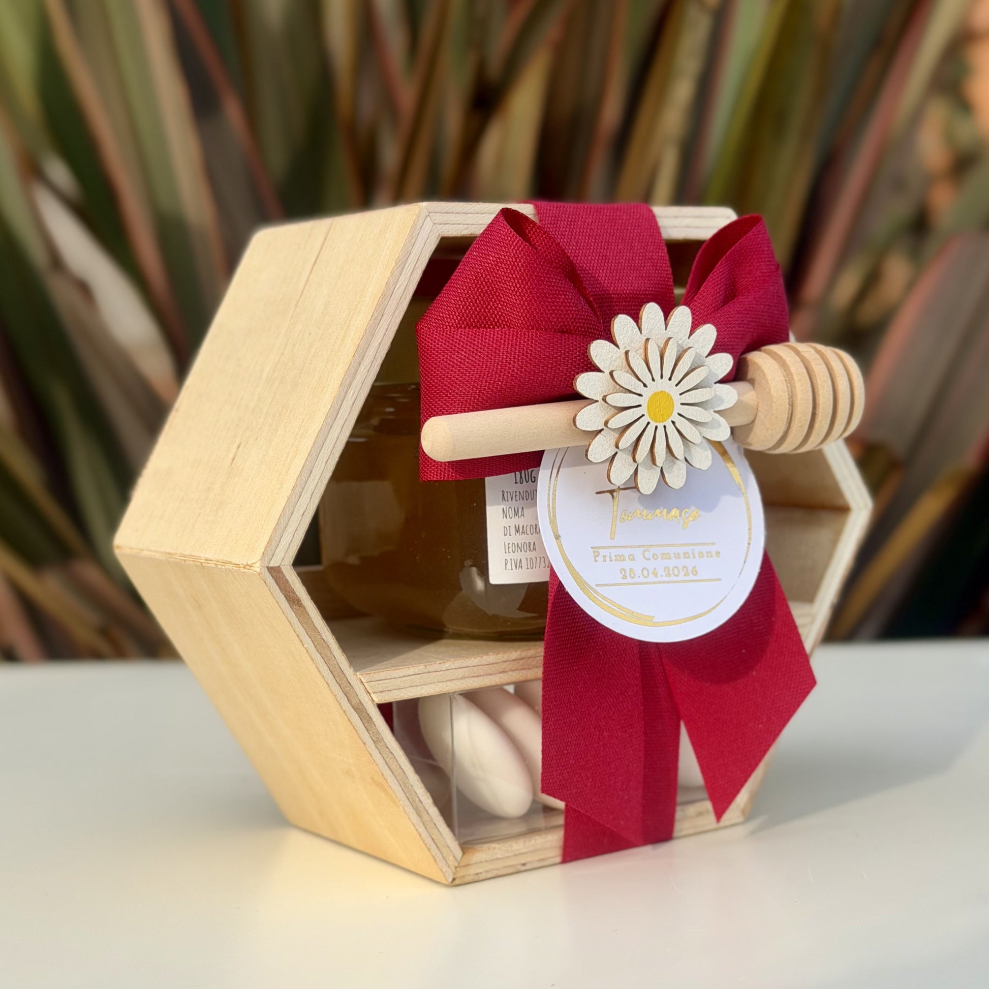 ✓ Una scatola esagonale in legno, realizzata a mano, riutilizzabile a piacere