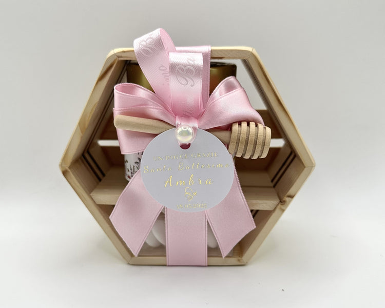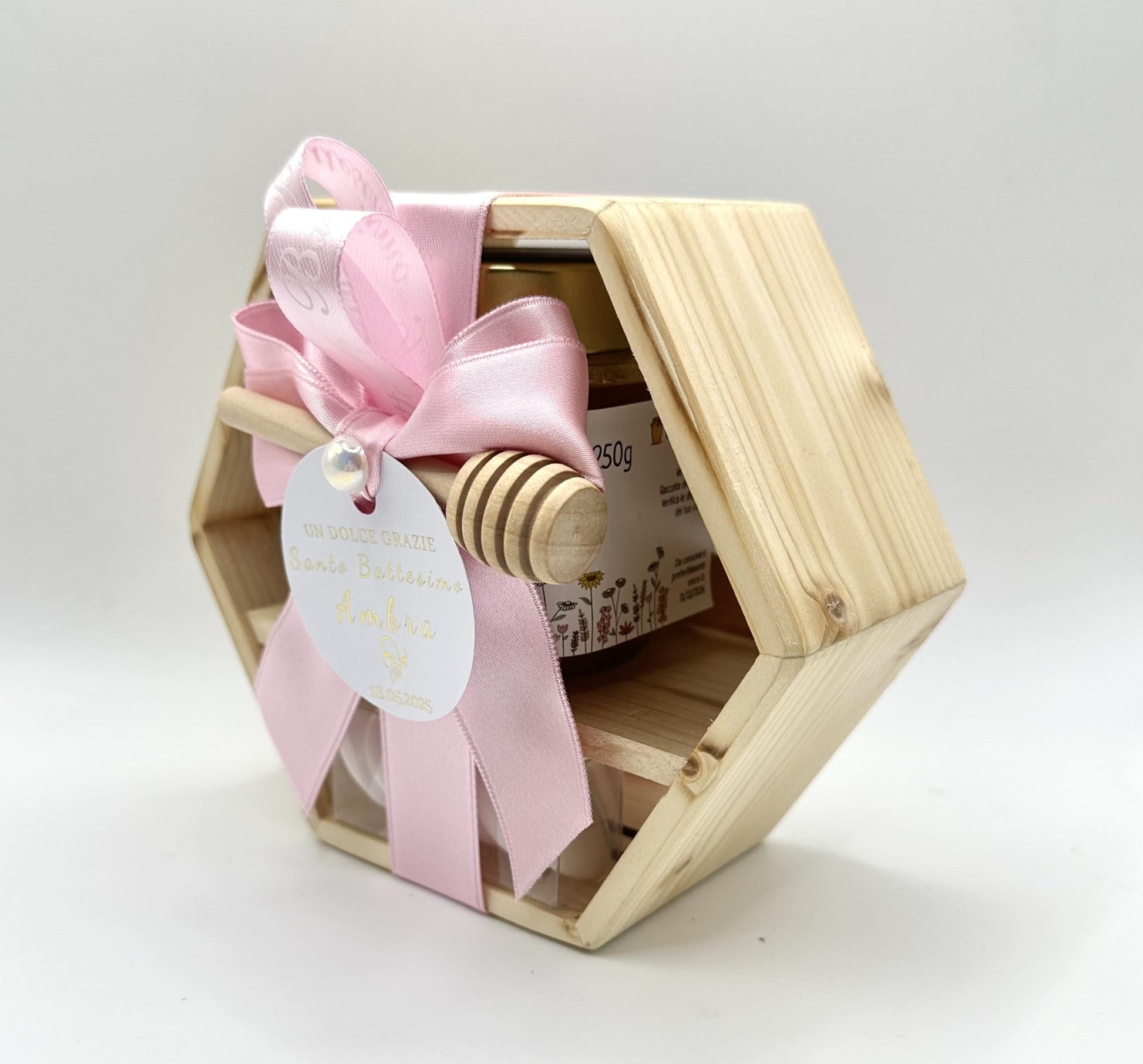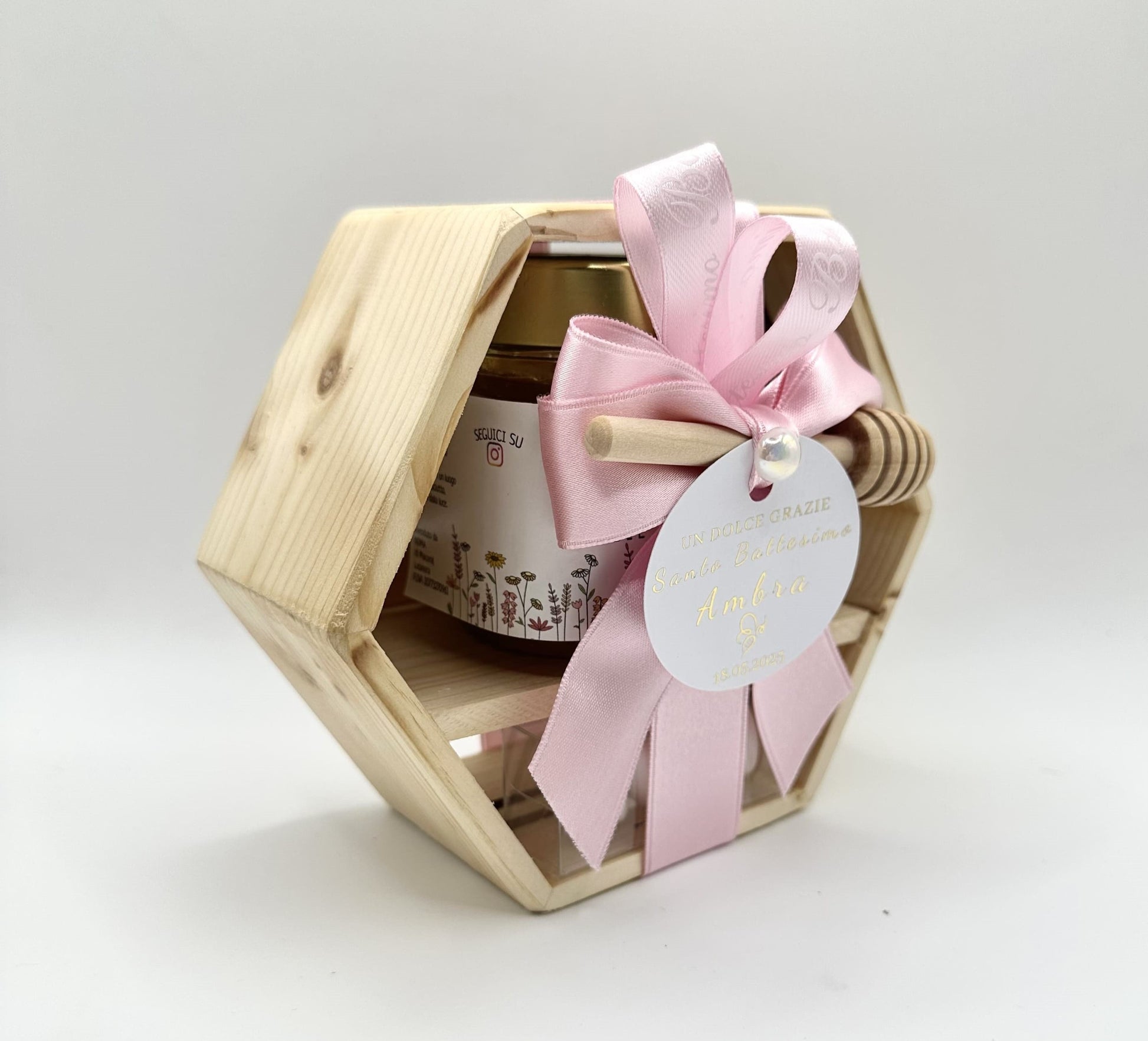 ✓ Una scatola esagonale in legno, realizzata a mano, riutilizzabile a piacere