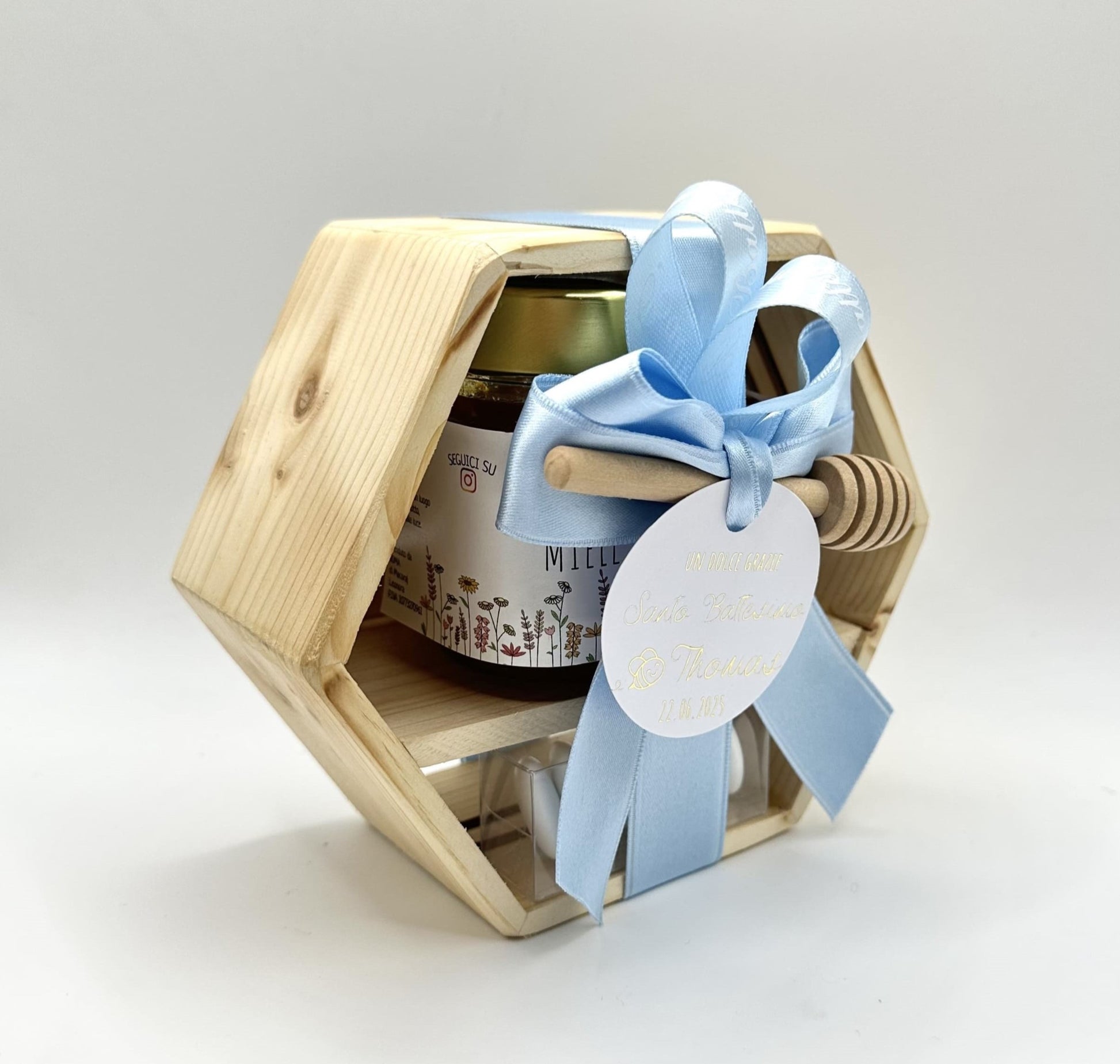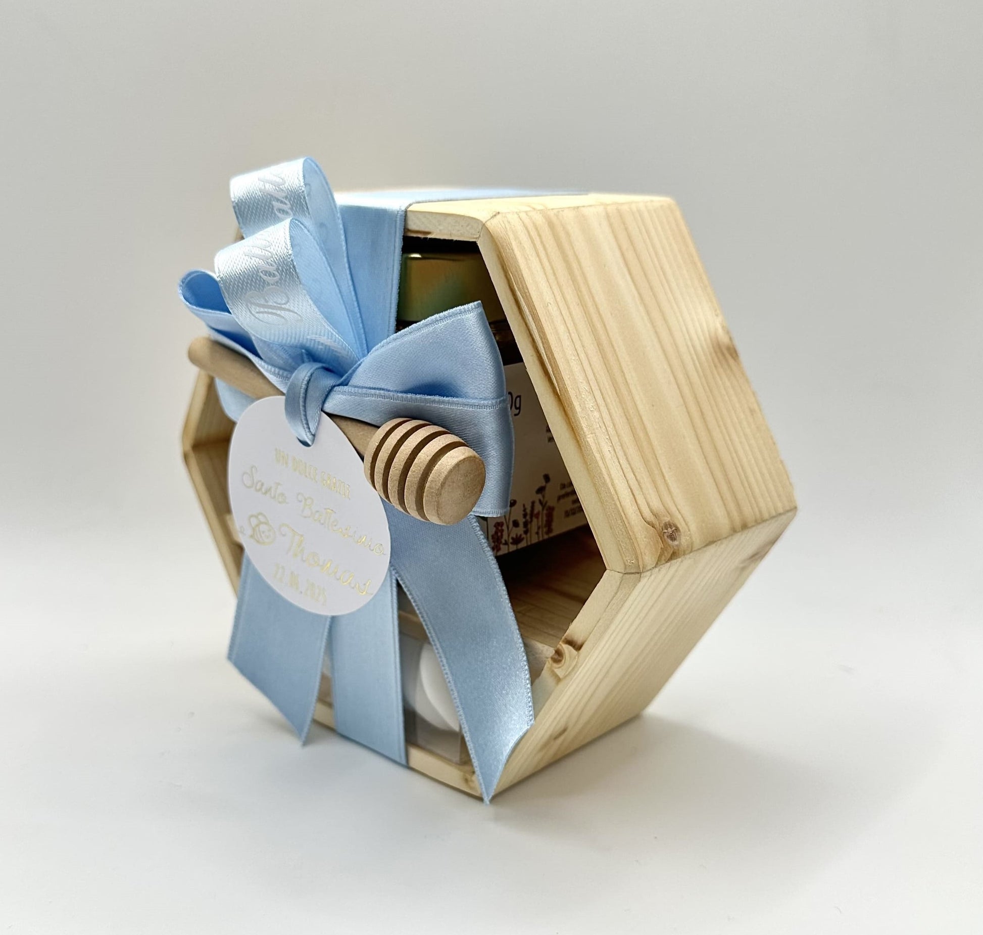 ✓ Una scatola esagonale in legno, realizzata a mano, riutilizzabile a piacere