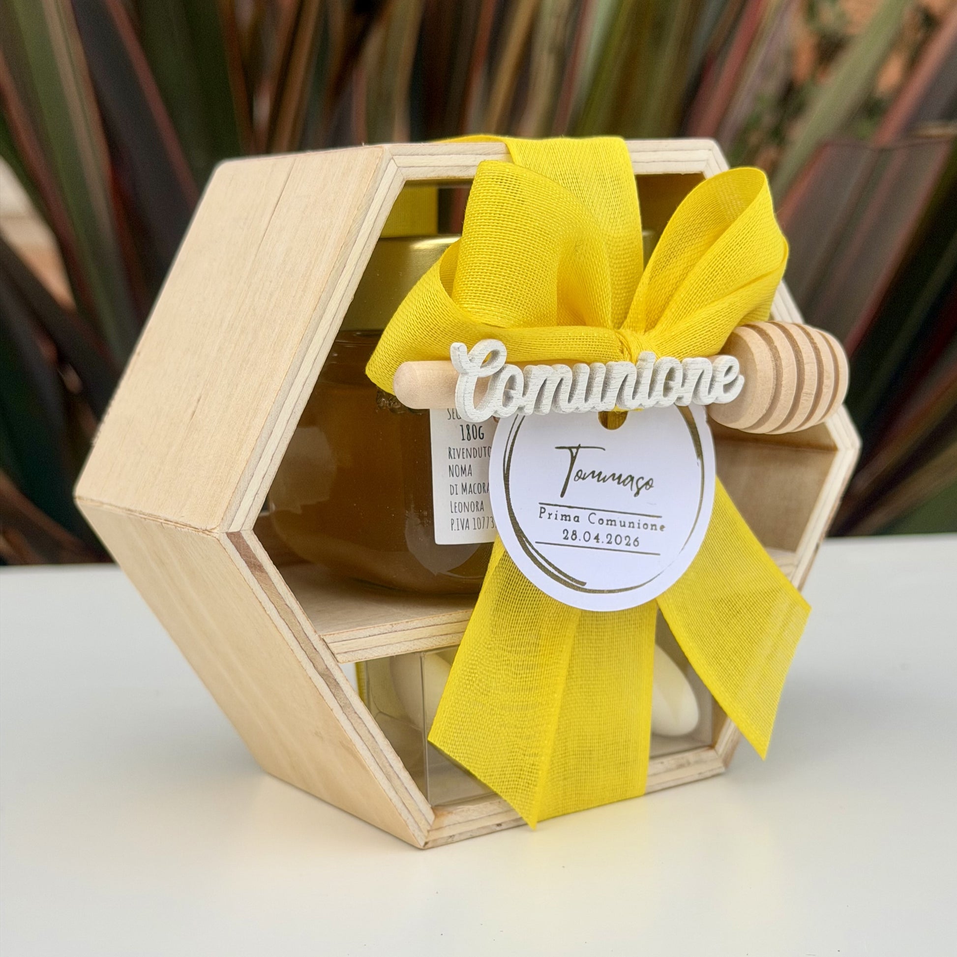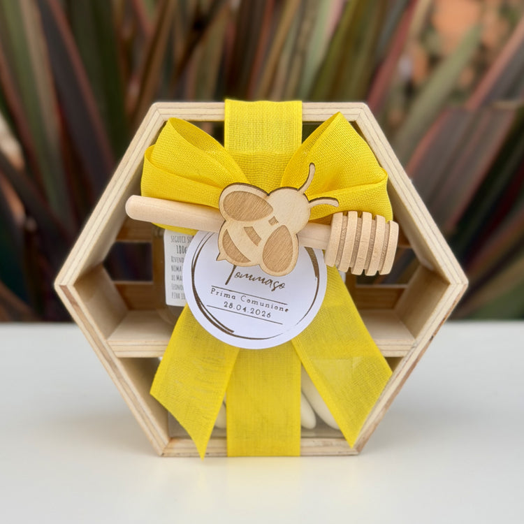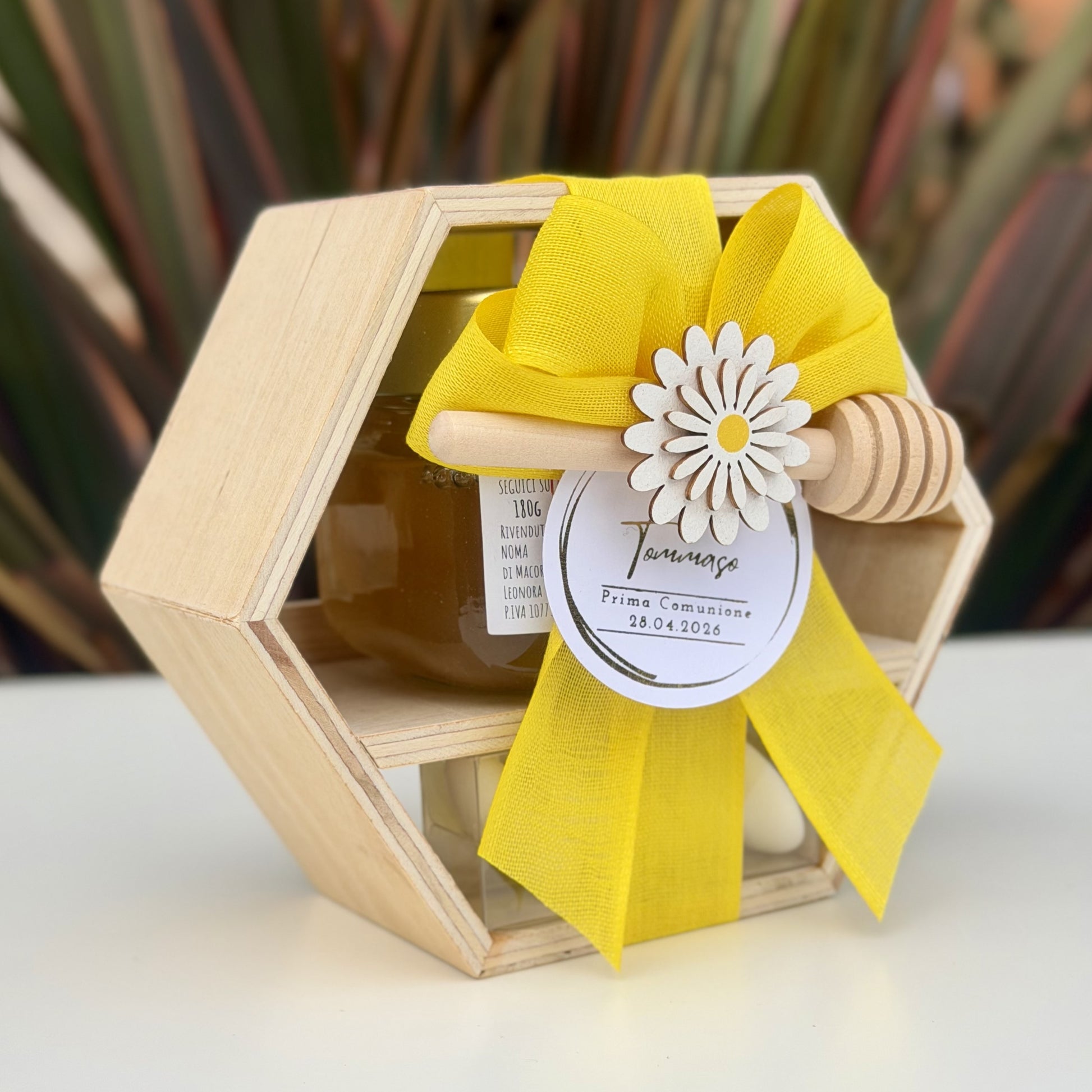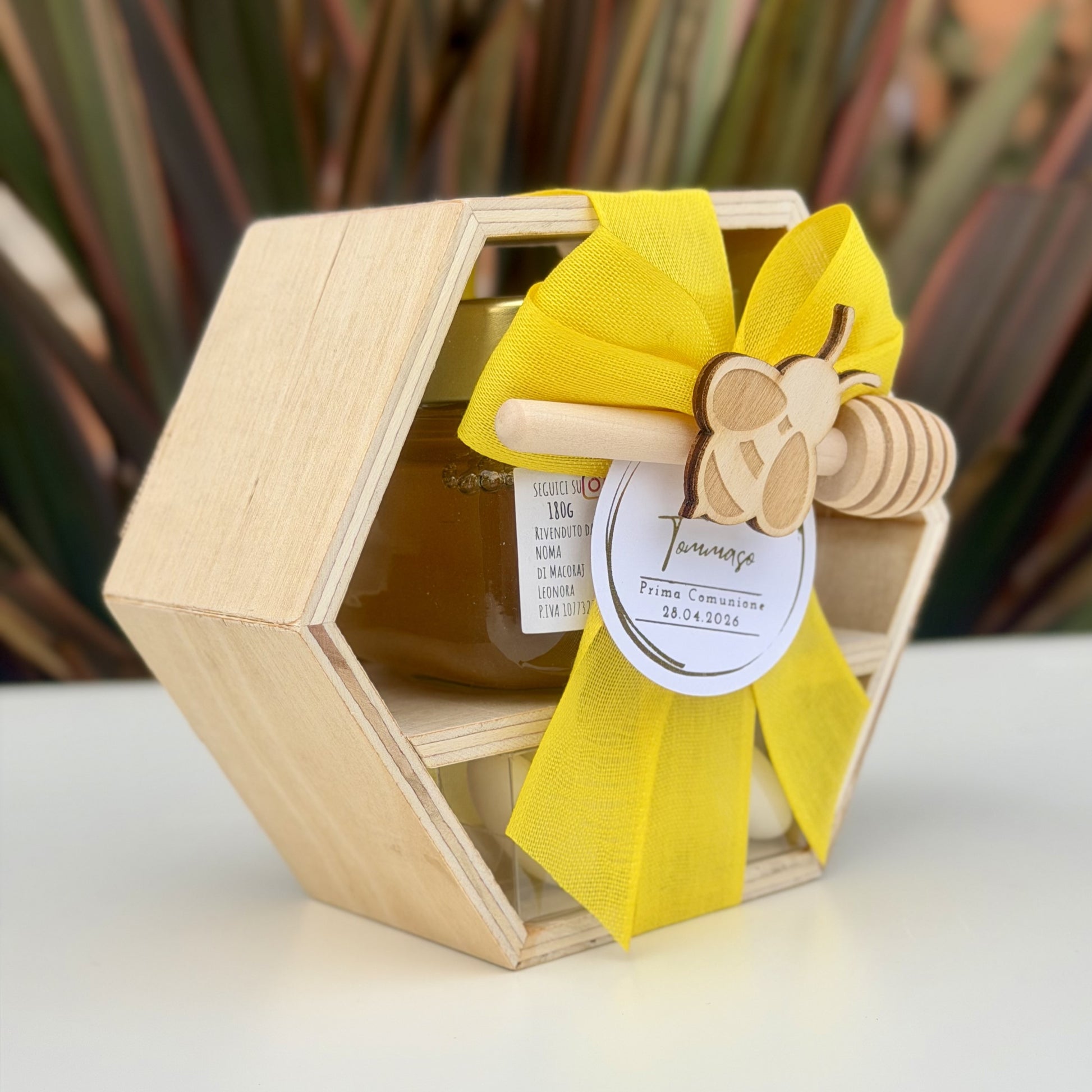 ✓ Una scatola esagonale in legno, realizzata a mano, riutilizzabile a piacere