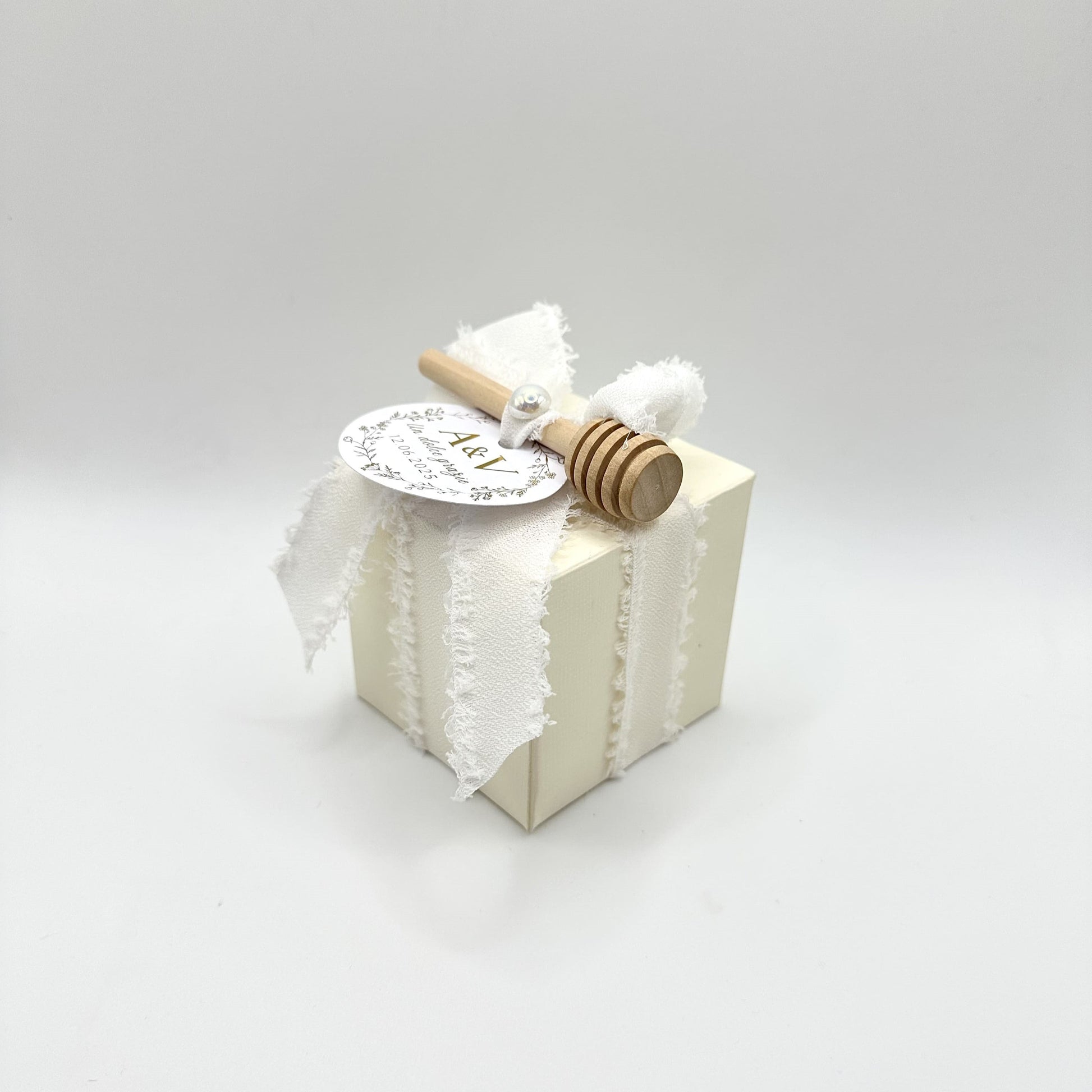 ✓ Una scatola in cartoncino color avorio