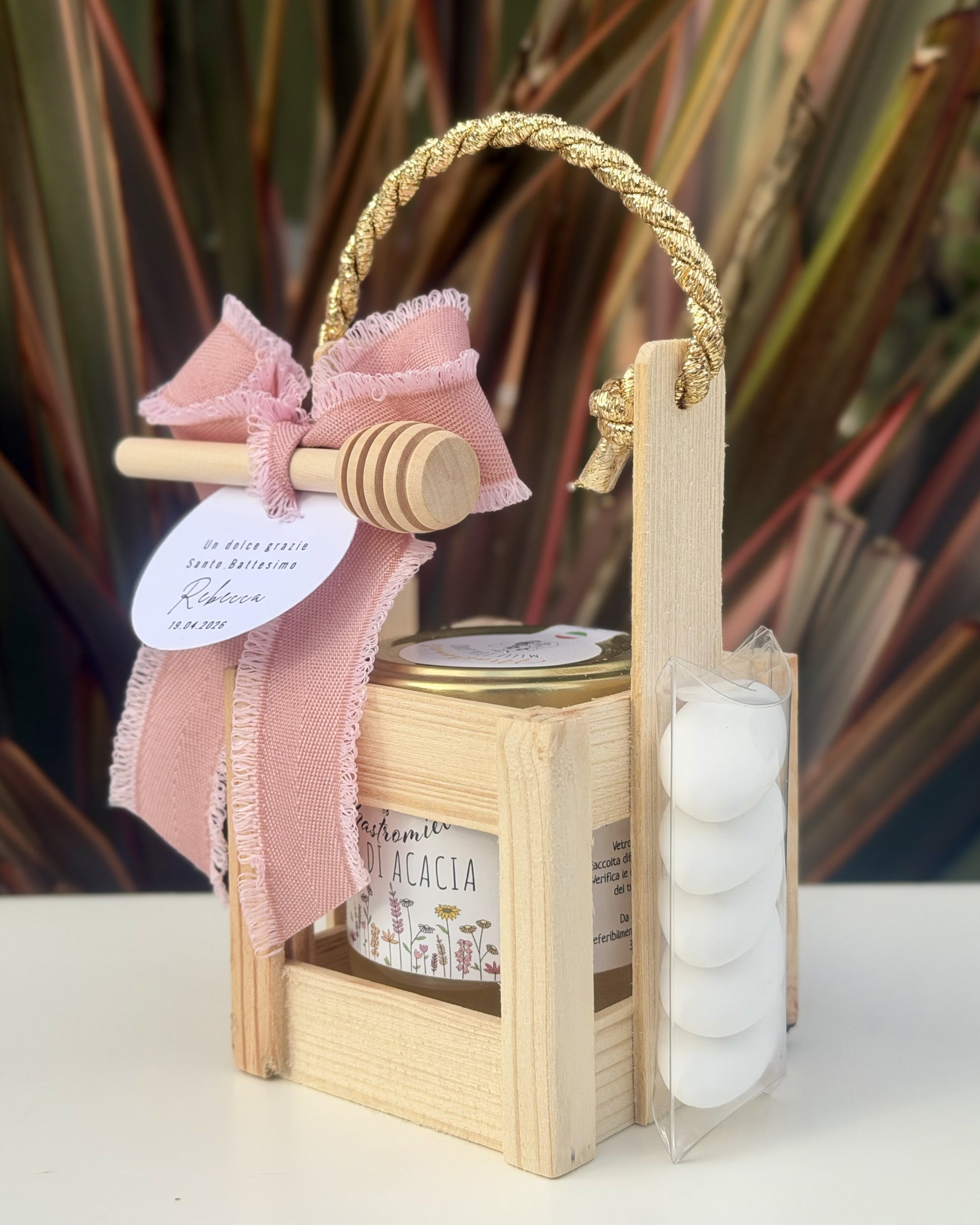 ✓ Una scatolina in legno con manici, realizzata a mano, riutilizzabile a piacere
