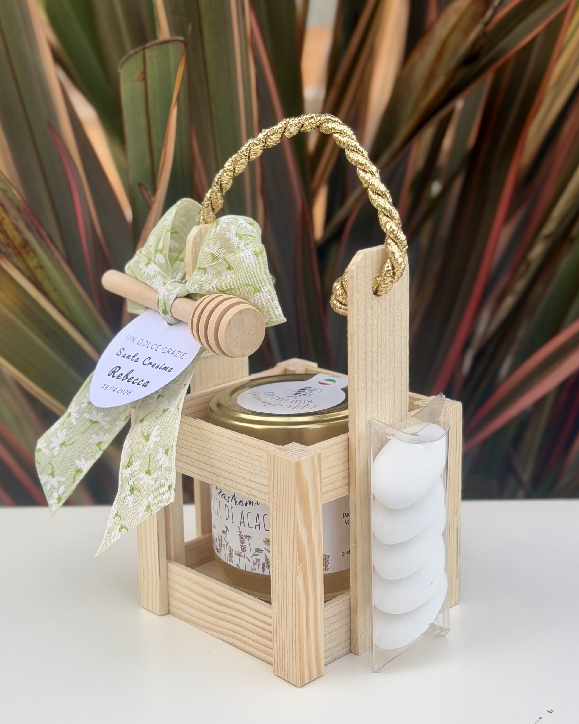 ✓ Una scatolina in legno con manici, realizzata a mano, riutilizzabile a piacere