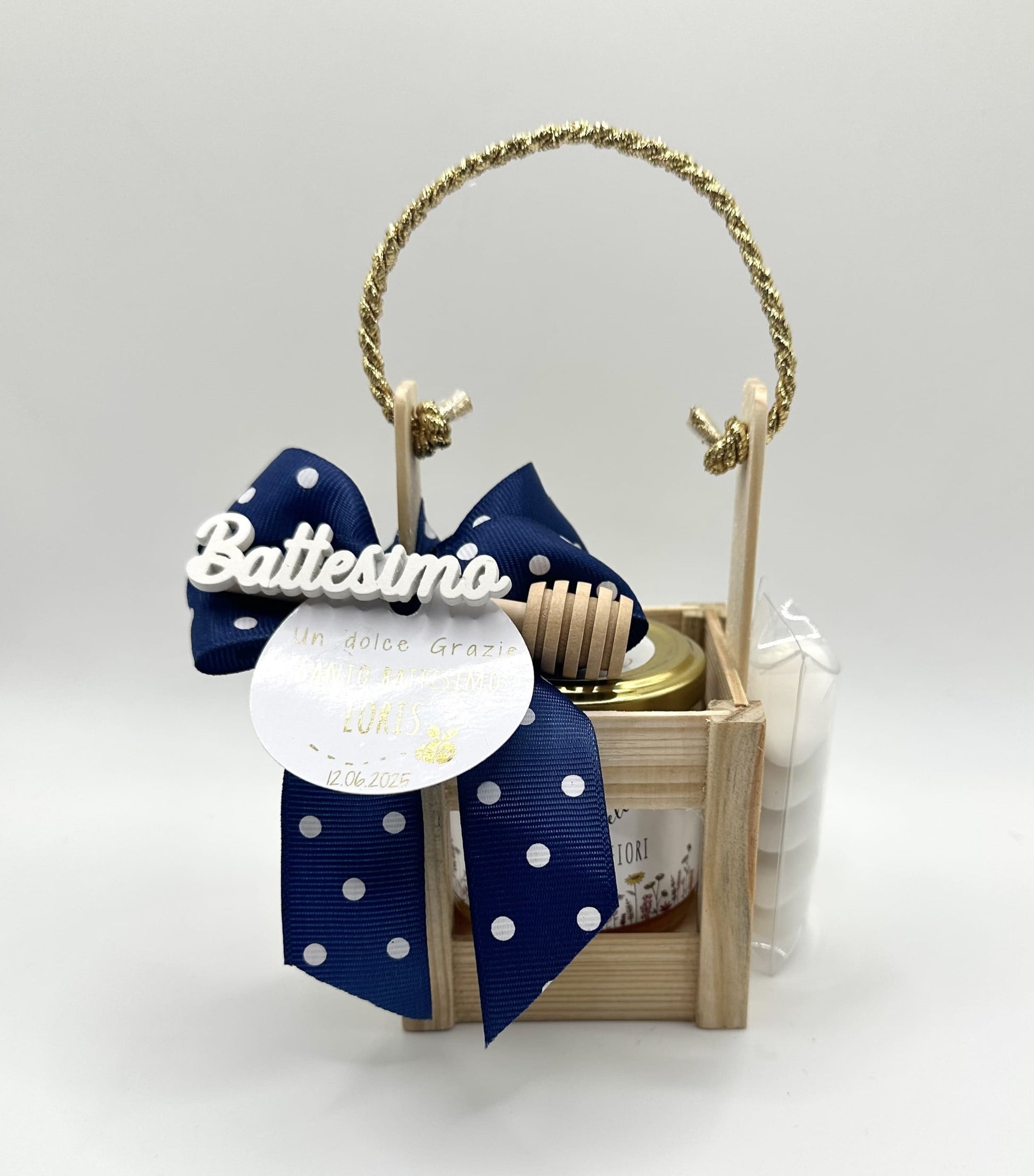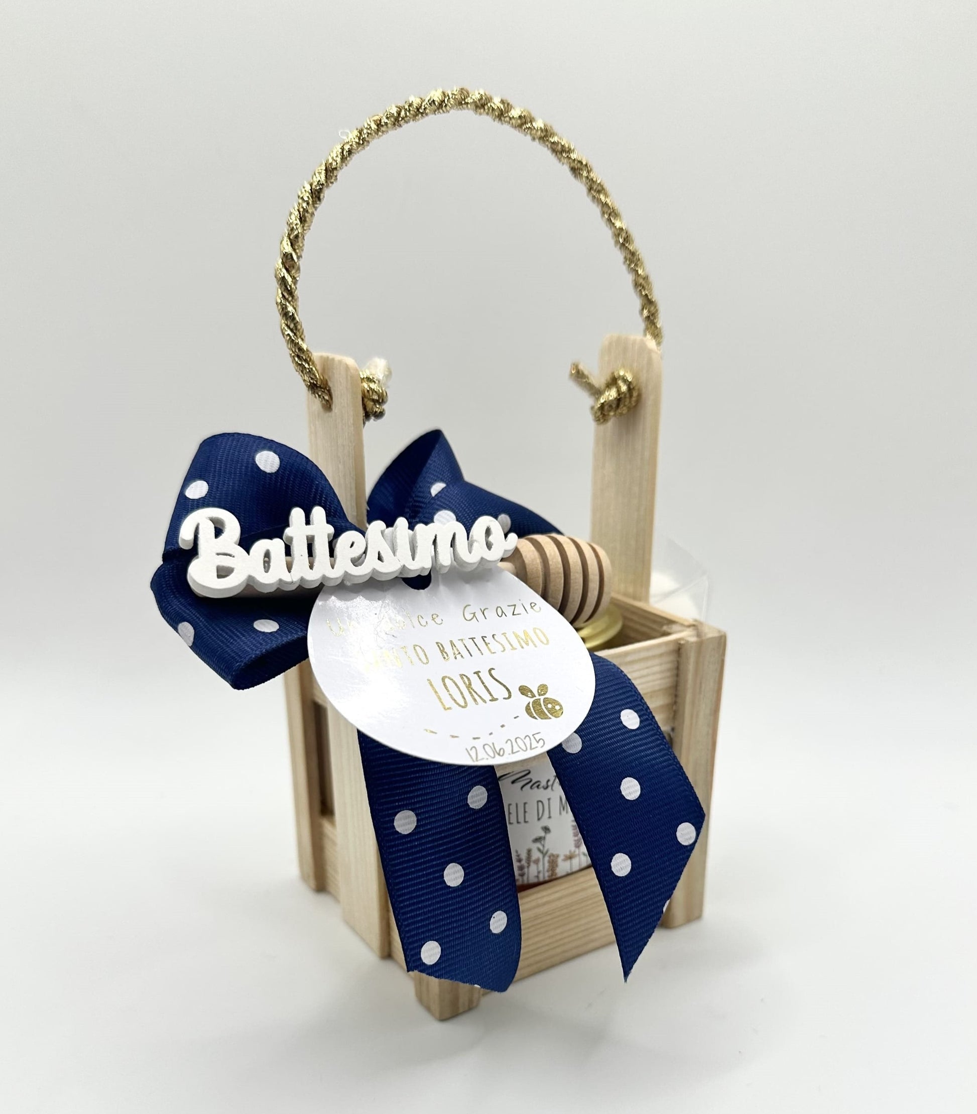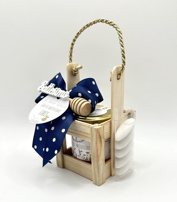 ✓ Una scatolina in legno con manici, realizzata a mano, riutilizzabile a piacere